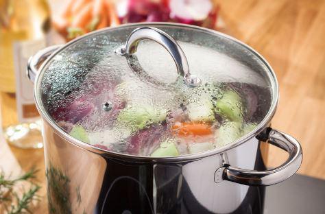 Perfect for soup or stews, with a glass vented lid and a good thick base suitable for all cooker types. With a matt stainless steel finish.