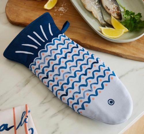 Practical and fun, this fish design gauntlet will protect your hands when picking up hot items.