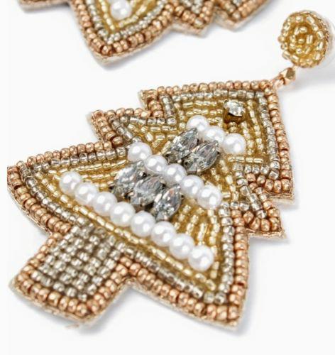CHRISTMAS TREES, GOLD AND PEARL BEADED EARRINGS