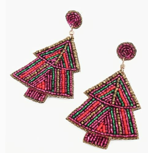 CHRISTMAS TREES, MULTI-STRIPE BEADED EARRINGS