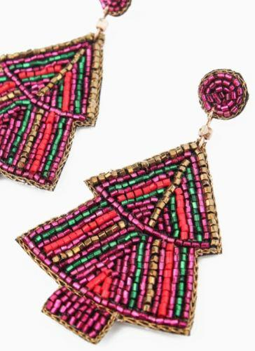 Add some festive joy to your outfit with our multi-coloured Christmas Tree Earrings! Featuring a beautiful stripe design made with shimmering beads.