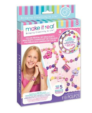 Sunlight transforms the colors of the beads! Create 5 DIY bracelets and enjoy as the bead colors change from white to pink, purple, and yellow! Color fades once inside but returns to vibrant colors anytime they are in natural sunlight. This DIY bracelet set makes a great gift for crafty tweens, whether for a birthday bash, holiday, or just because. Perfect for tweens looking to get creative and explore their unique style.