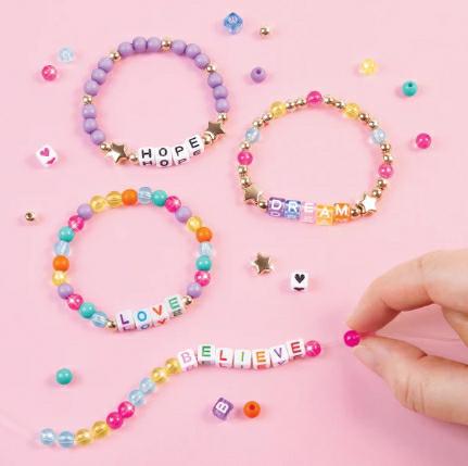 The ultimate friendship bracelet kit! Use over 1000 assorted beads to create bracelets with fun and inspiring messages. Friendship bracelets are uber trendy and always in style, and they make the perfect DIY activity for young creatives. Trade with friends to share the fun and spread positive messages! This bracelet kit makes a great gift idea for budding creatives, whether it’s for a birthday bash, holiday, or just because. Assembling friendship bracelets develops tweens’ fine motor skills and empowers them to express themselves creatively. This activity is perfect for kids ages 8+, allowing them to get creative and explore their one-of-a-kind style.
