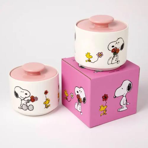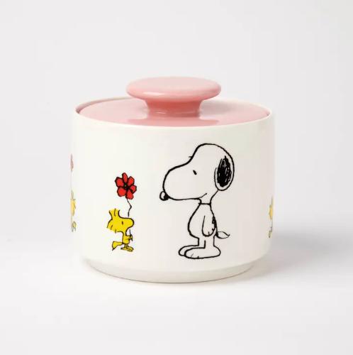 A new addition to our range of Snoopy and Woodstock – a ceramic lidded jar 12cm diameter; 10.5cm height perfect for sweets, sugar cubes, tea, coffee, just about anything!