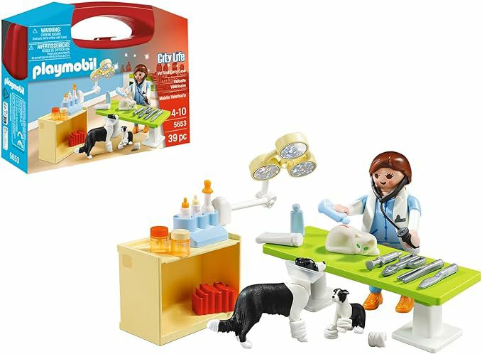 The Playmobil Vet Carry Case includes a Playmobil vet with three animals, an operating table, an equipment trolley and bandages. The set makes a great toy for little ones who want to care for and heal their pets and comes in a handy carry case to keep all the pieces safely stored and transported easily.
